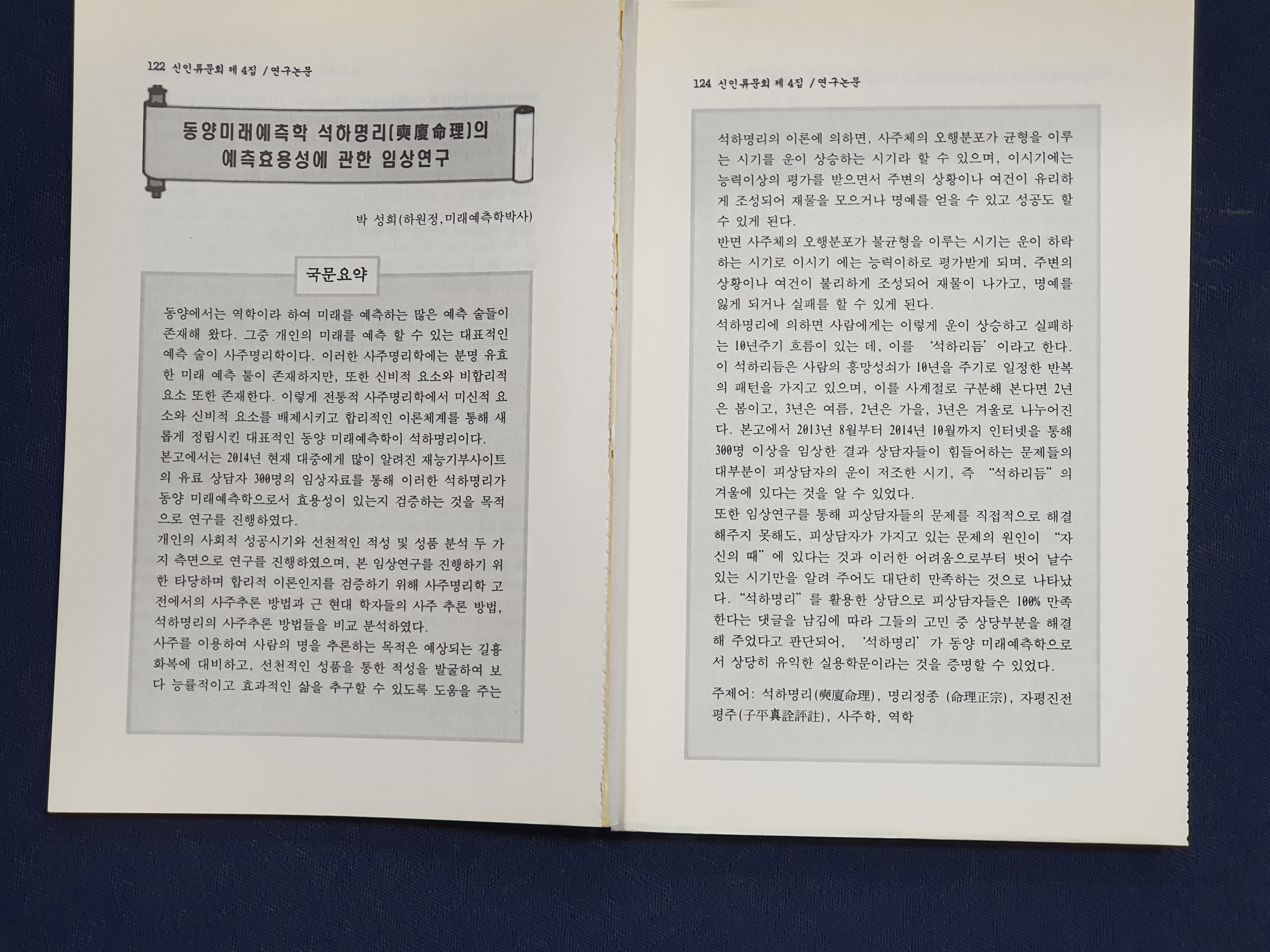 사주명리학을 연구하여 논문으로 발표합니다.